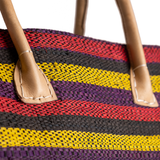 BOLSO RAFFIA GRANDE TIRAS CUERO MULTICOLOR