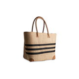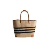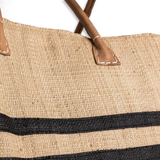 BOLSO RAFFIA TIRAS DE CUERO NATURAL RAYAS NEGRAS