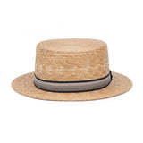 Sombrero Canotier Corcel en color natural, un diseño clásico y elegante ideal para la temporada de verano. Confeccionado en fibra natural trenzada, ofrece frescura, ligereza y un look atemporal. Su cinta de falla con corbatín aporta un toque distintivo y sofisticado, mientras que el sistema interior ajustable. Perfecto para looks veraniegos, eventos al aire libre y uso diario con estilo.